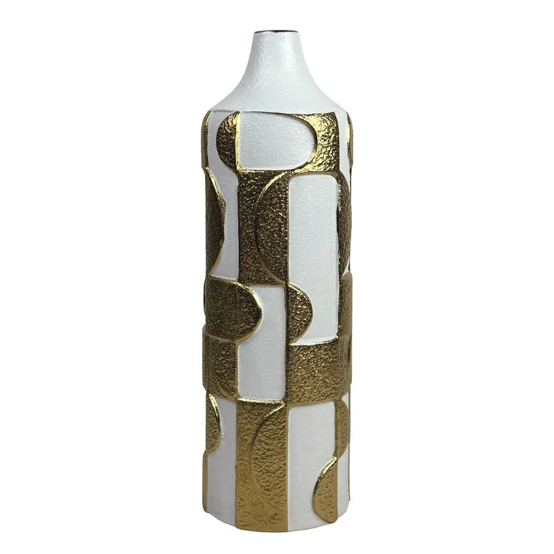 ΚΕΡΑΜΙΚΟ ΒΑΖΟ ΛΕΥΚΟ/ΧΡΥΣΟ ΑΝΑΓΛΥΦΑ ΓΕΩΜΕΤΡΙΚΑ ΣΧΗΜΑΤΑ ΜΕΓΑΛΟ - 44.5cm 1/6ΚΙΒ