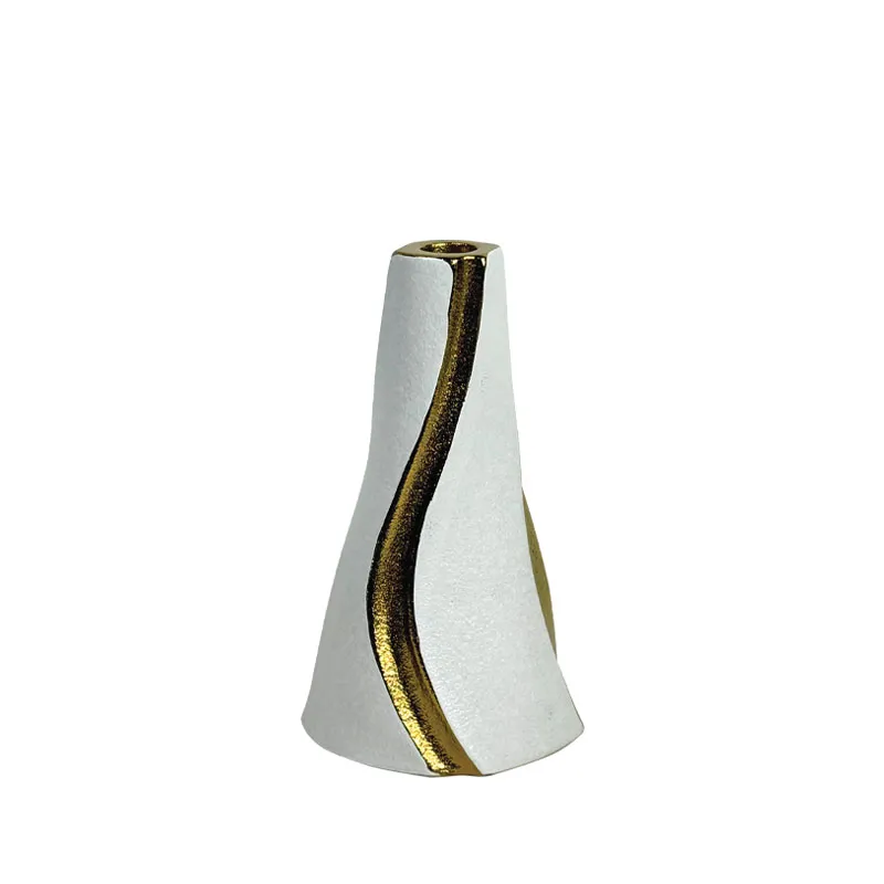 ΚΕΡΑΜΙΚΟ ΚΗΡΟΠΗΓΙΟ ΛΕΥΚΟ/ΧΡΥΣΟ ΚΩΝΙΚΟ ΚΑΘΕΤΑ ΚΥΜΑΤΑ ΜΕΓΑΛΟ - 24.1cm 1/12ΚΙΒ