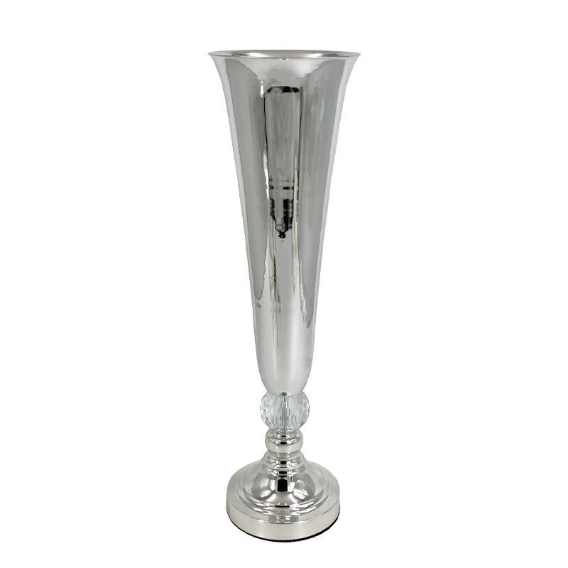 ΒΑΖΟ ΜΕΤΑΛΛΙΚO ΑΣΗΜΙ/ΛΕΥΚΟ ΚΛΑΣΙΚΟ ΜΕ ΚΡΥΣΤΑΛΛΟ ΜΕΓΑΛΟ - Φ15x54cm 12/ΚΙΒ