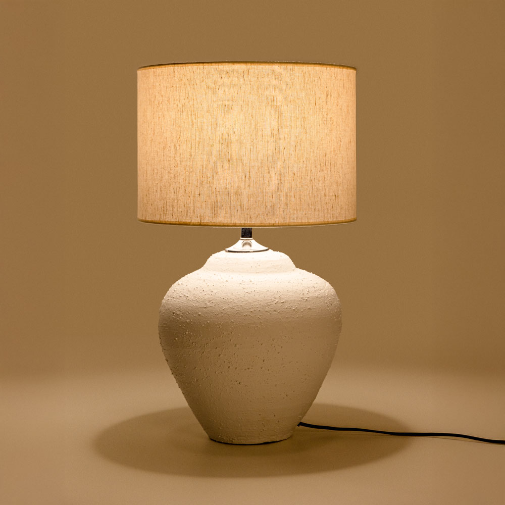 SANTORINI ΦΩΤΙΣΤΙΚΟ ΕΠΙΤΡΑΠΕΖΙΟ 30x30x60cm ΚΕΡΑΜΙΚΟ ΛΕΥΚΟ ΛΙΝΟ ΜΠΕΖ