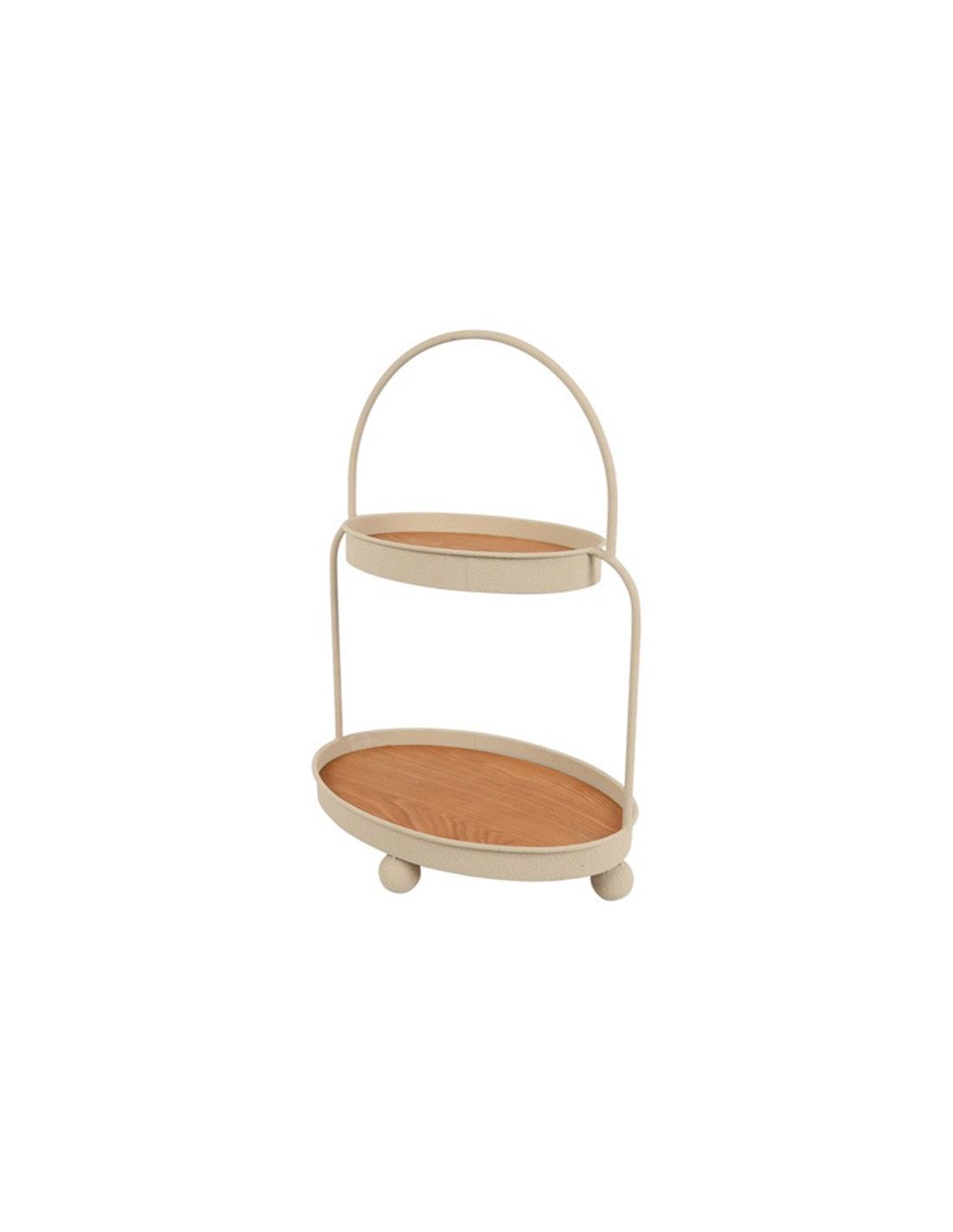 Δίσκος 2οροφος μεταλ.εκρού με ξύλο 37,5x25,5x51cm
