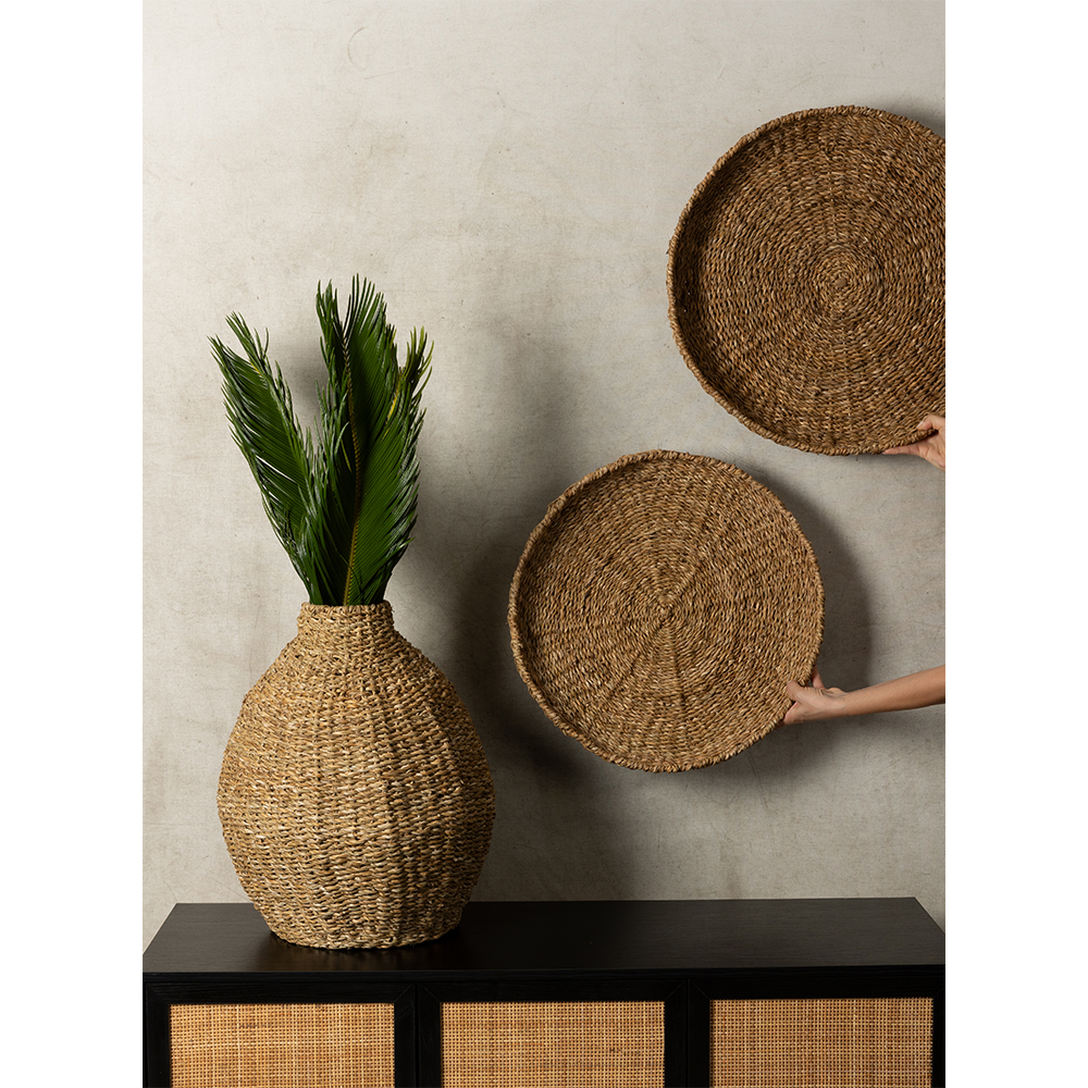 NEREA ΔΙΣΚΟΣ SET 3ΤΜΧ 55x55x8cm SEAGRASS ΦΥΣΙΚΟ ΜΕΤΑΛΛΟ