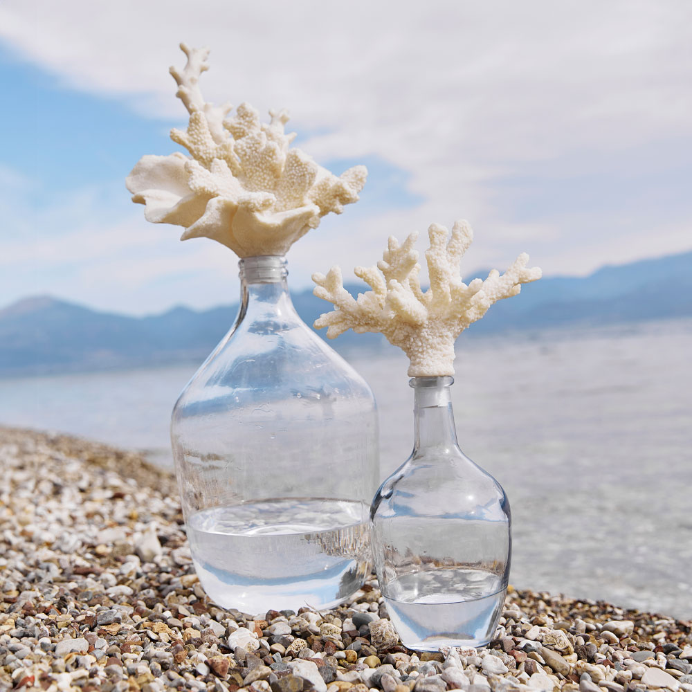 CORALLI ΜΠΟΥΚΑΛΑ ΜΕ ΚΑΠΑΚΙ 24x15x41cm ΓΥΑΛΙ ΔΙΑΦΑΝΟ ΜΠΕΖ POLYRESIN