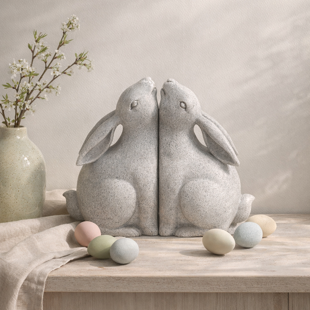 BUN BUN ΔΙΑΚΟΣΜΗΤΙΚΟ ΒΙΒΛΙΟΣΤΑΤΗΣ SET 2ΤΜΧ 22x9x18cm POLYRESIN ΜΠΕΖ