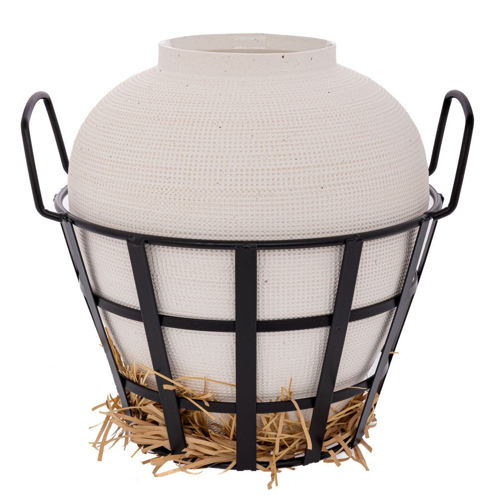 ΛΕΥΚΟ ΚΕΡΑΜΙΚΟ ΒΑΖΟ ΣΕ ΜΑΥΡΟ ΣΙΔΕΡΕΝΙΟ ΚΑΛΑΘΙ ΜΕ ΧΕΡΟΥΛΙΑ 39Χ34,5Χ33,5ΕΚ