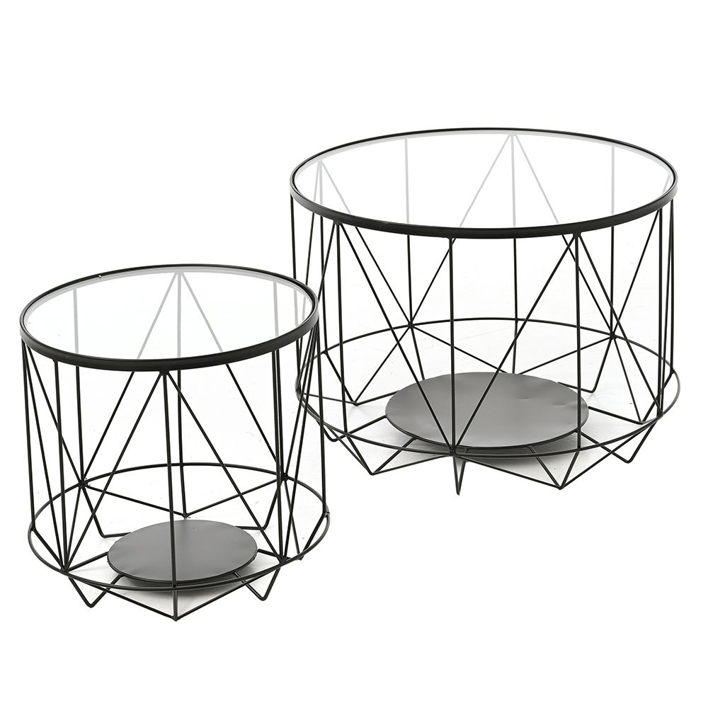 ΣΕΤ 2 ΜΕΤΑΛΛΙΚΟ ΓΕΩΜΕΤΡΙΚΟ ΤΡΑΠΕΖΙ ΜΕ ΓΥΑΛΙ 60x60x40 40x40x38EK