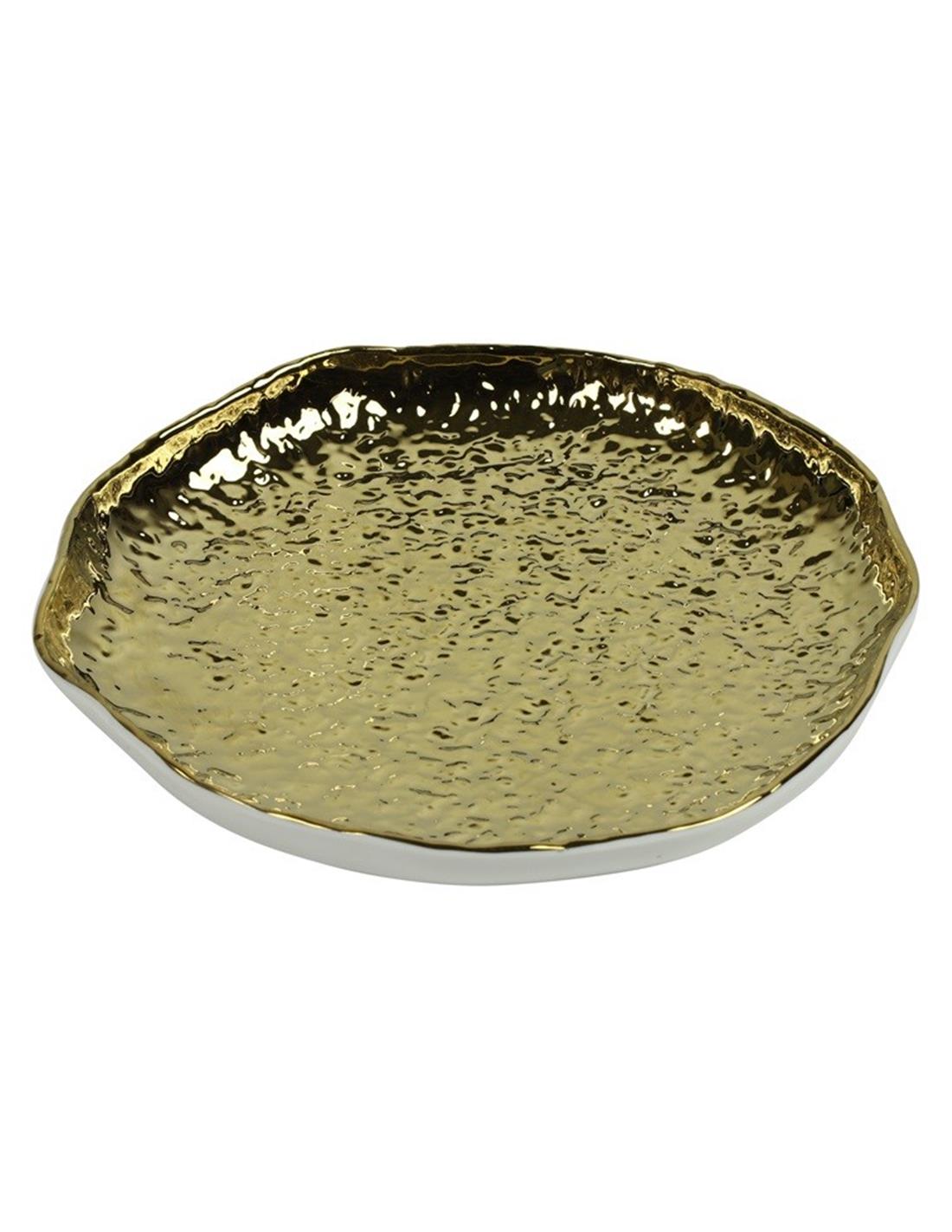 Πιατέλα κερ.λευκή/χρυσή Φ17,5 Η2,5cm