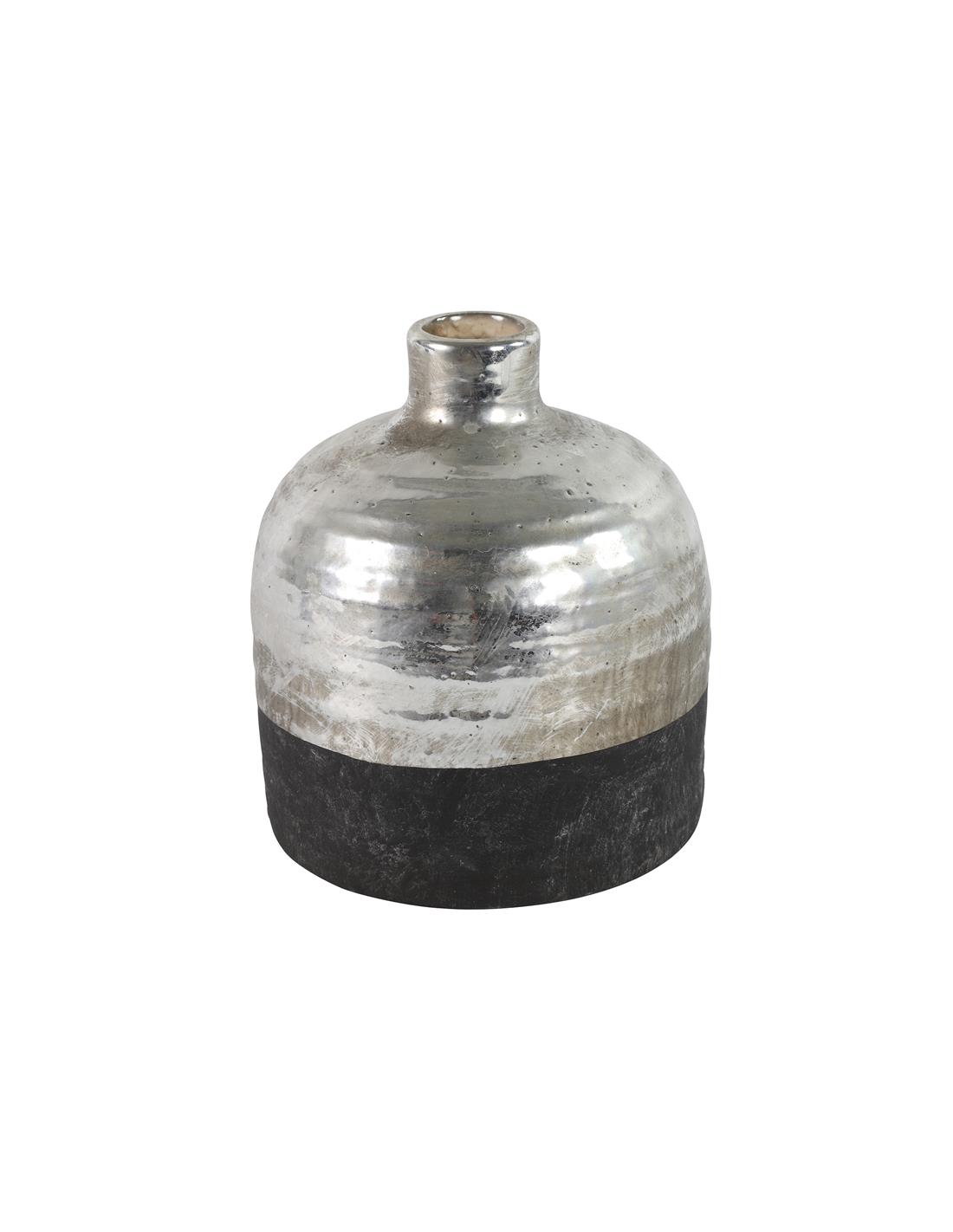 Βάζο μπουκάλι κεραμ.μαύρο με ασημί 15Χ17