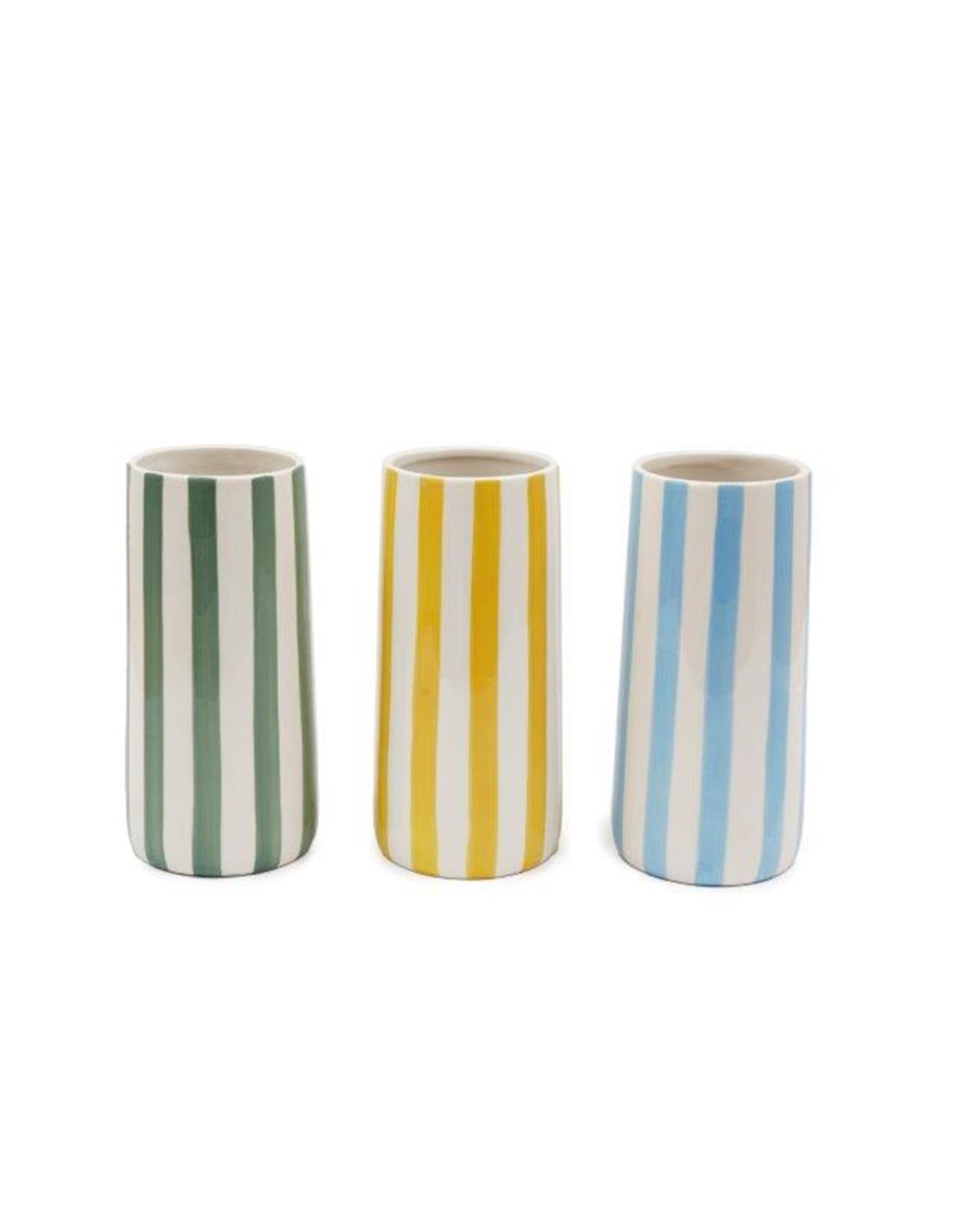 Βάζο κεραμικό ριγέ/3χρώματα 11x21cm