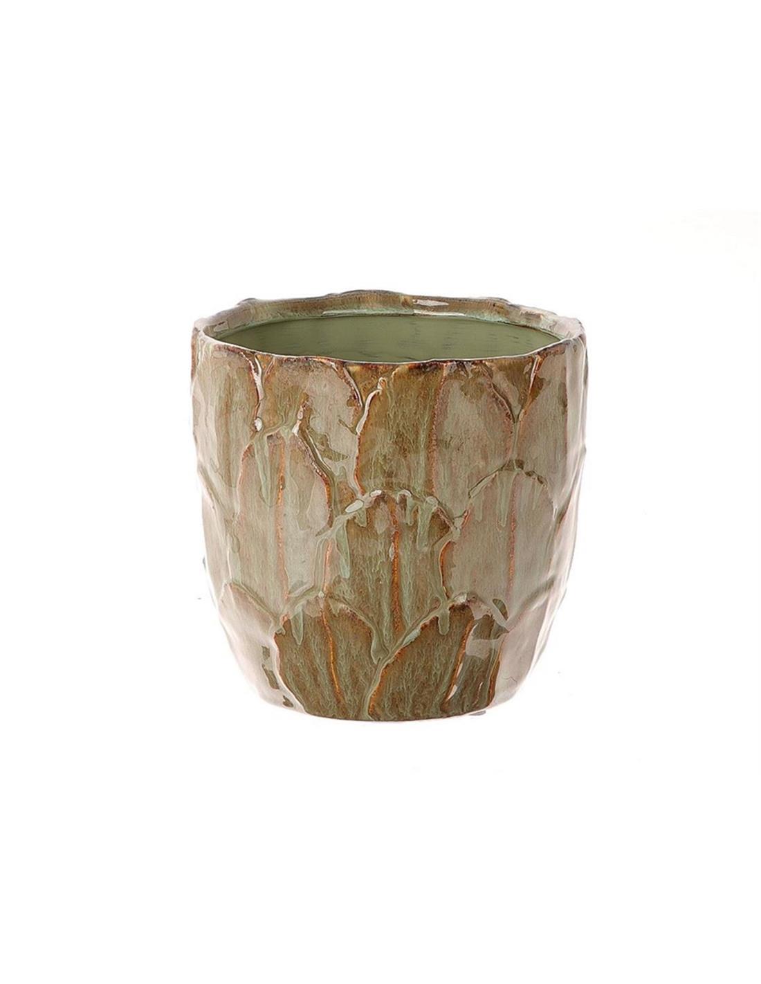 Κασπώ κεραμ. Αναγλ.φύλλα πράσινο καφέ Φ11Η11cm
