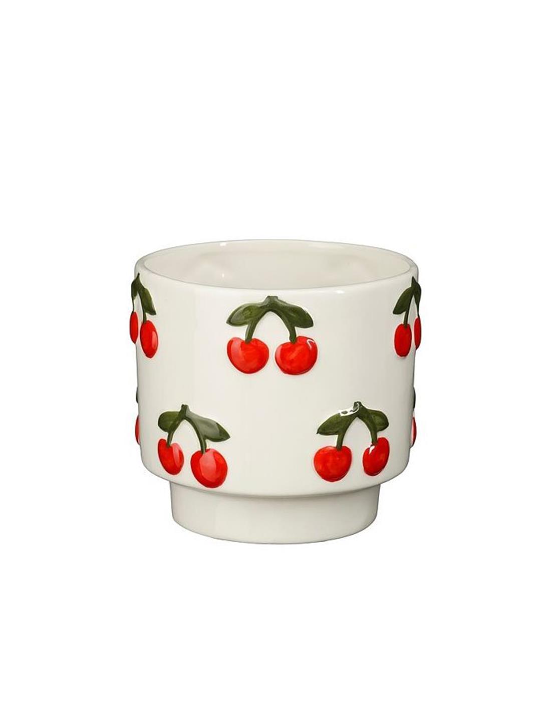 Κασπώ κεραμικό λευκό με κεράσια Φ12,5Η11cm