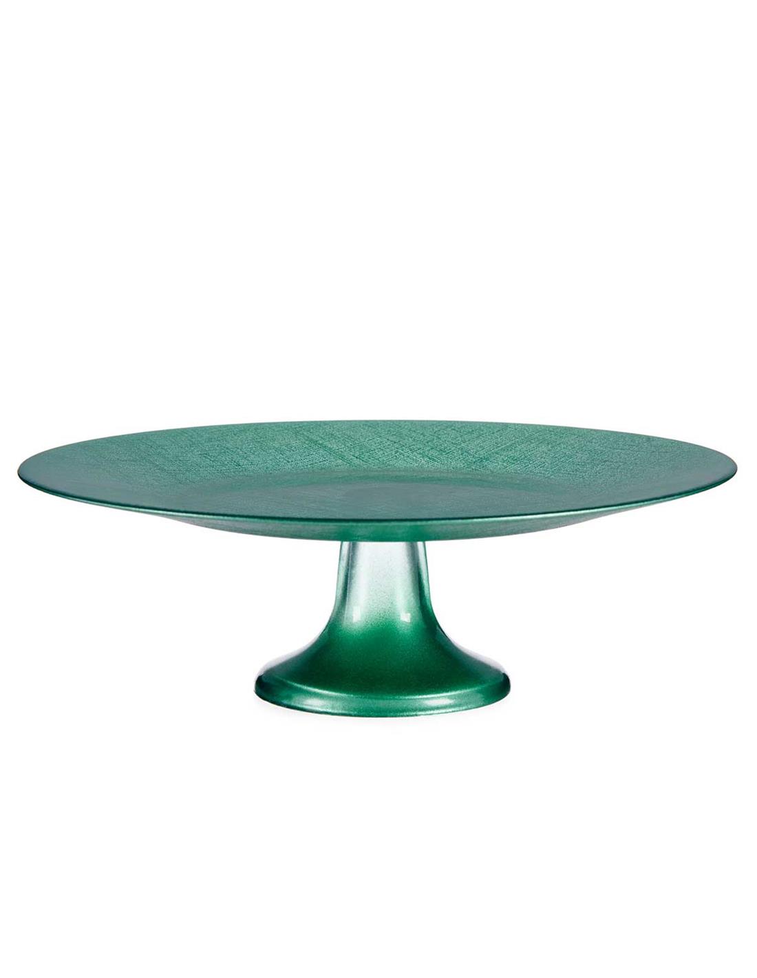 Πιατέλα σερβιρισμ.γυάλ.με πόδι πράσινη Φ32,5 Η10,5cm