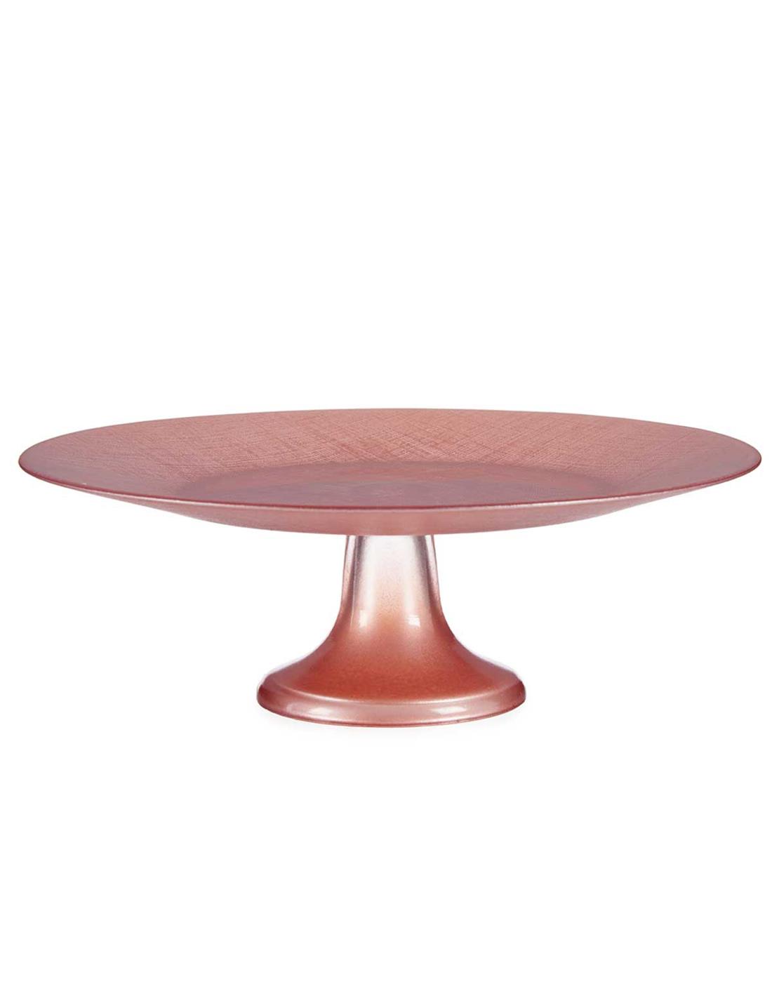 Πιατέλα σερβιρισμ.γυάλ.με πόδι ροζ Φ32,5 Η10,5cm