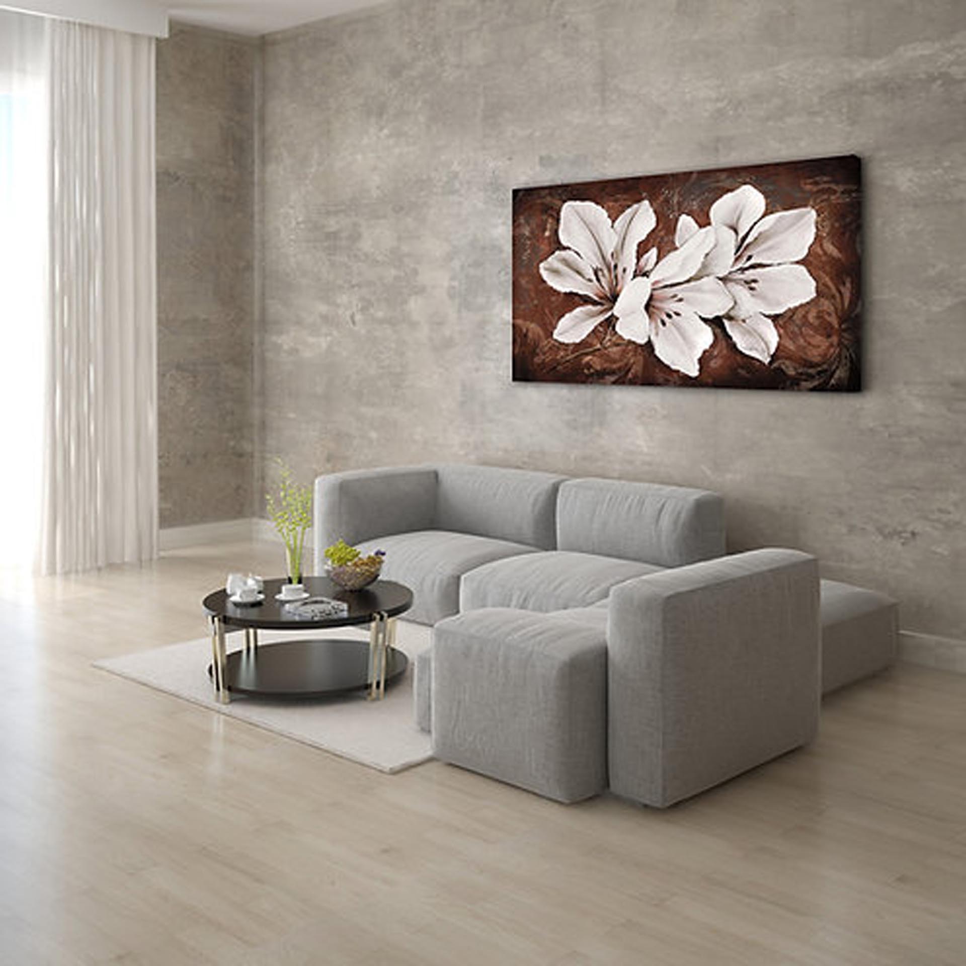 M292 - Πίνακας λευκός κρίνος σε καφέ φόντο