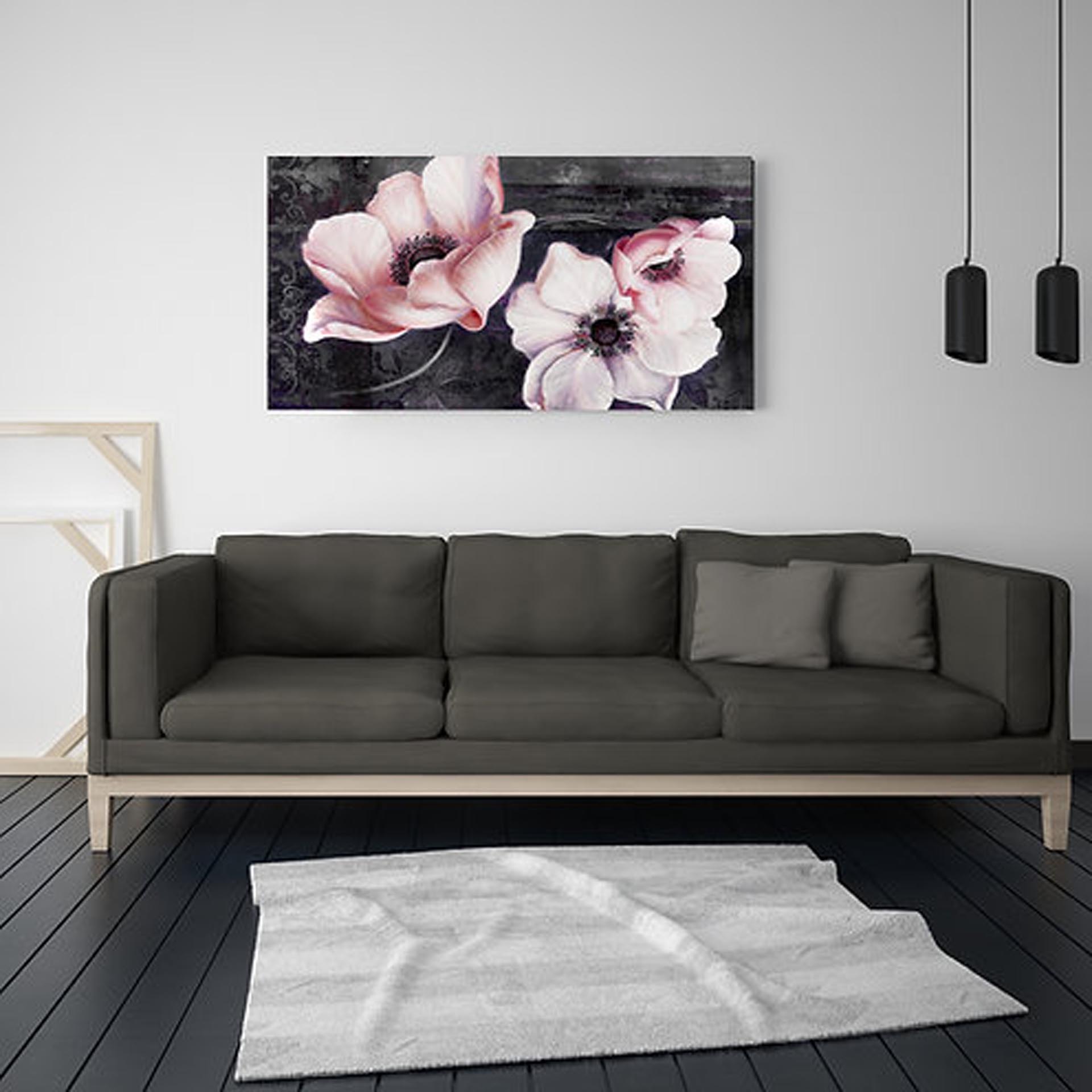 M486 - Πίνακας ροζ λουλούδια σε μαύρο φόντο