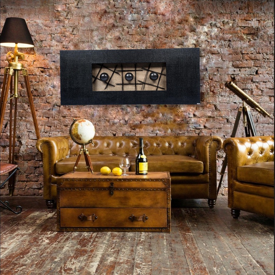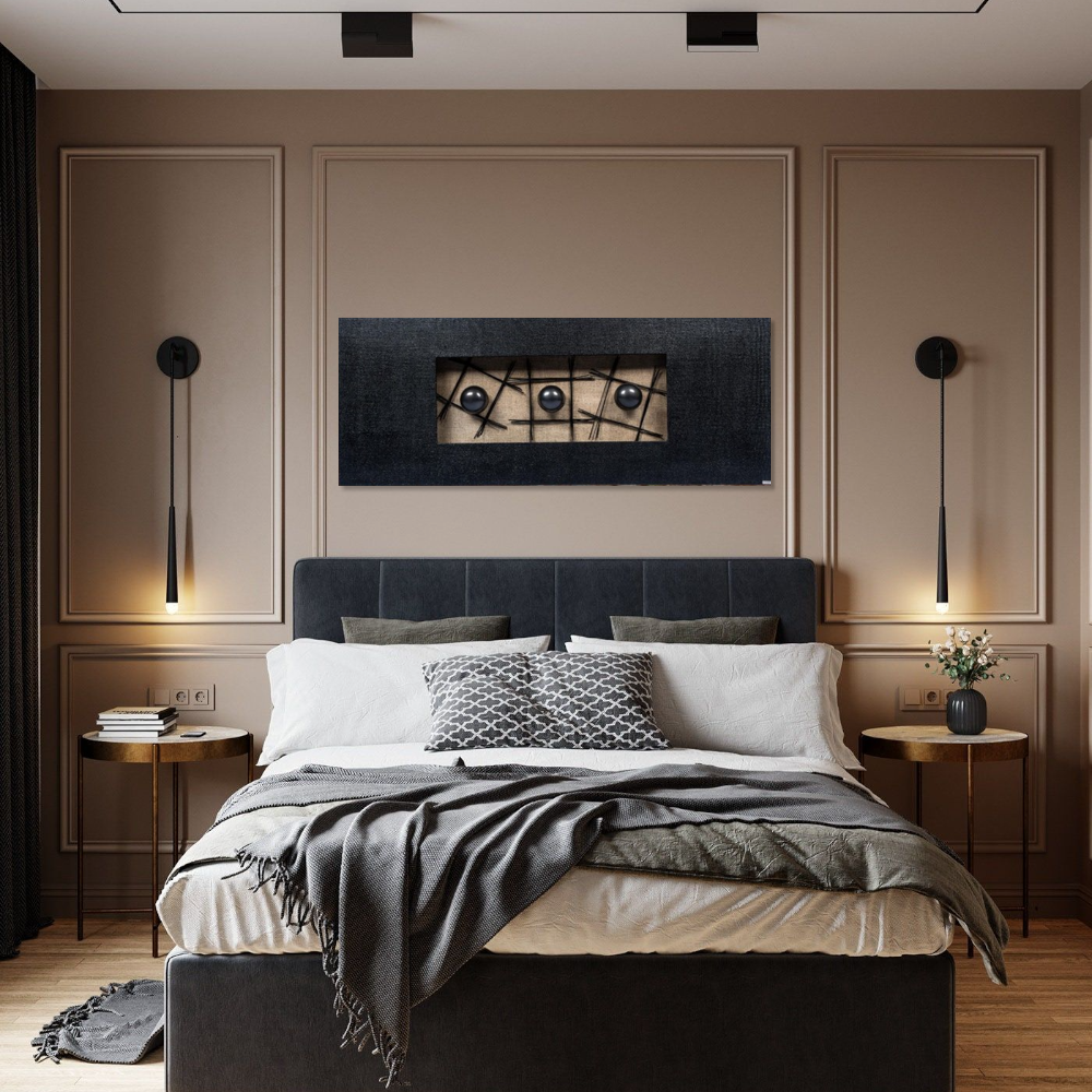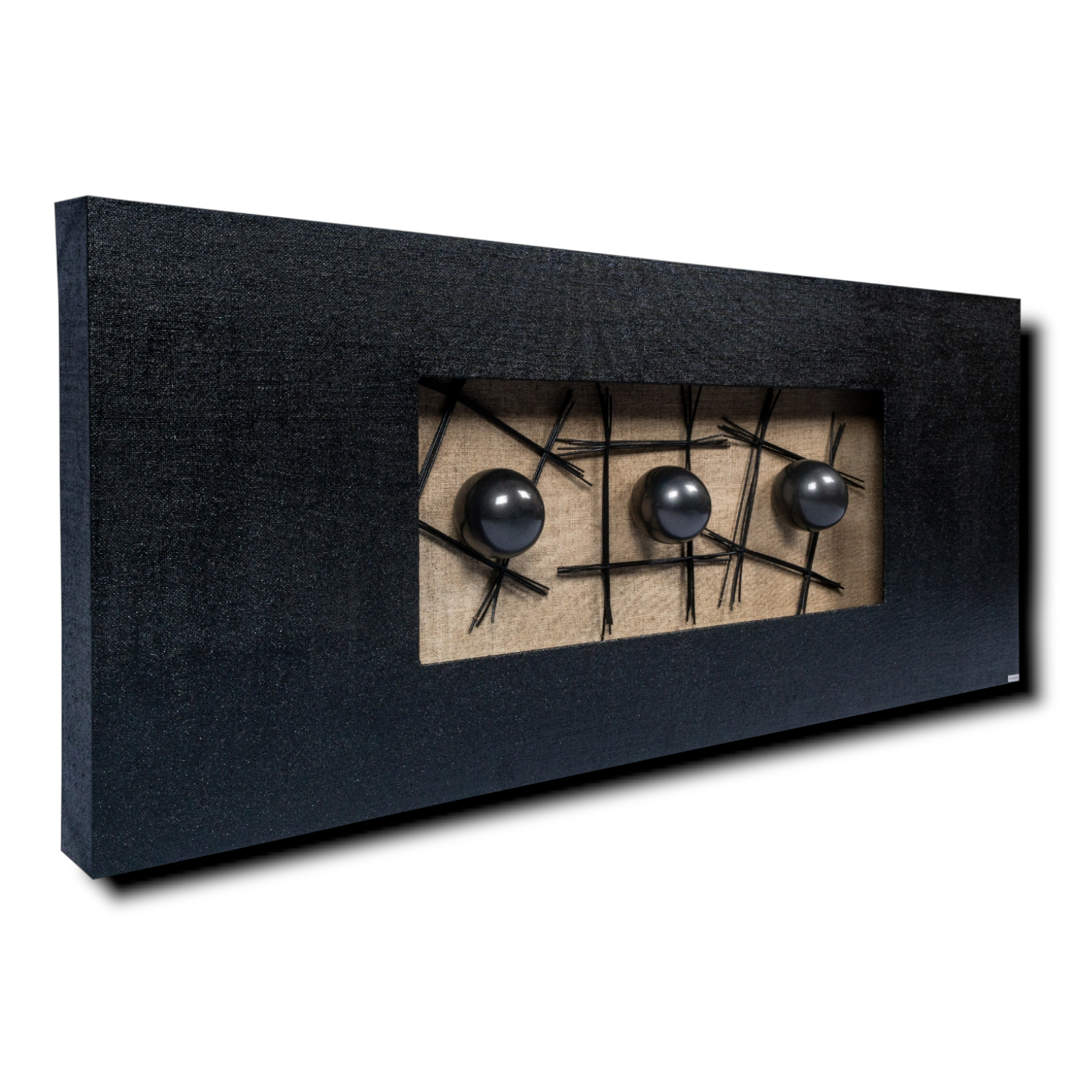 Ορθογώνιος τρισδιάστατος πίνακας της σειράς TECHNICAL 3D, σε αποχρώσεις του μαύρου και του μπεζ, σε συνδυασμό με γυαλιστερό γκρι (σφαίρες).