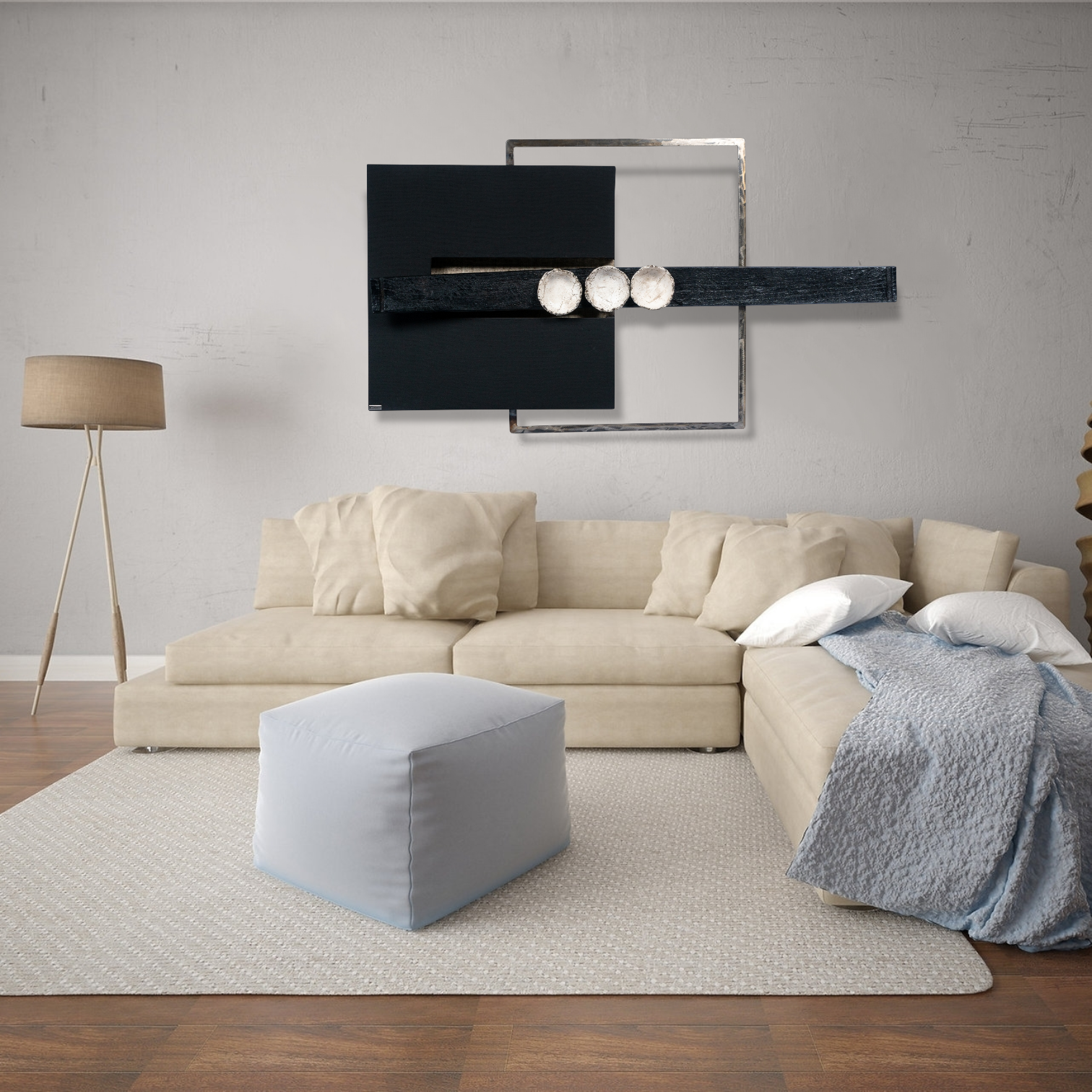 Ορθογώνιος τρισδιάστατος πίνακας της σειράς TECHNICAL 3D, σε αποχρώσεις βέγκε, μπεζ και μαύρου.