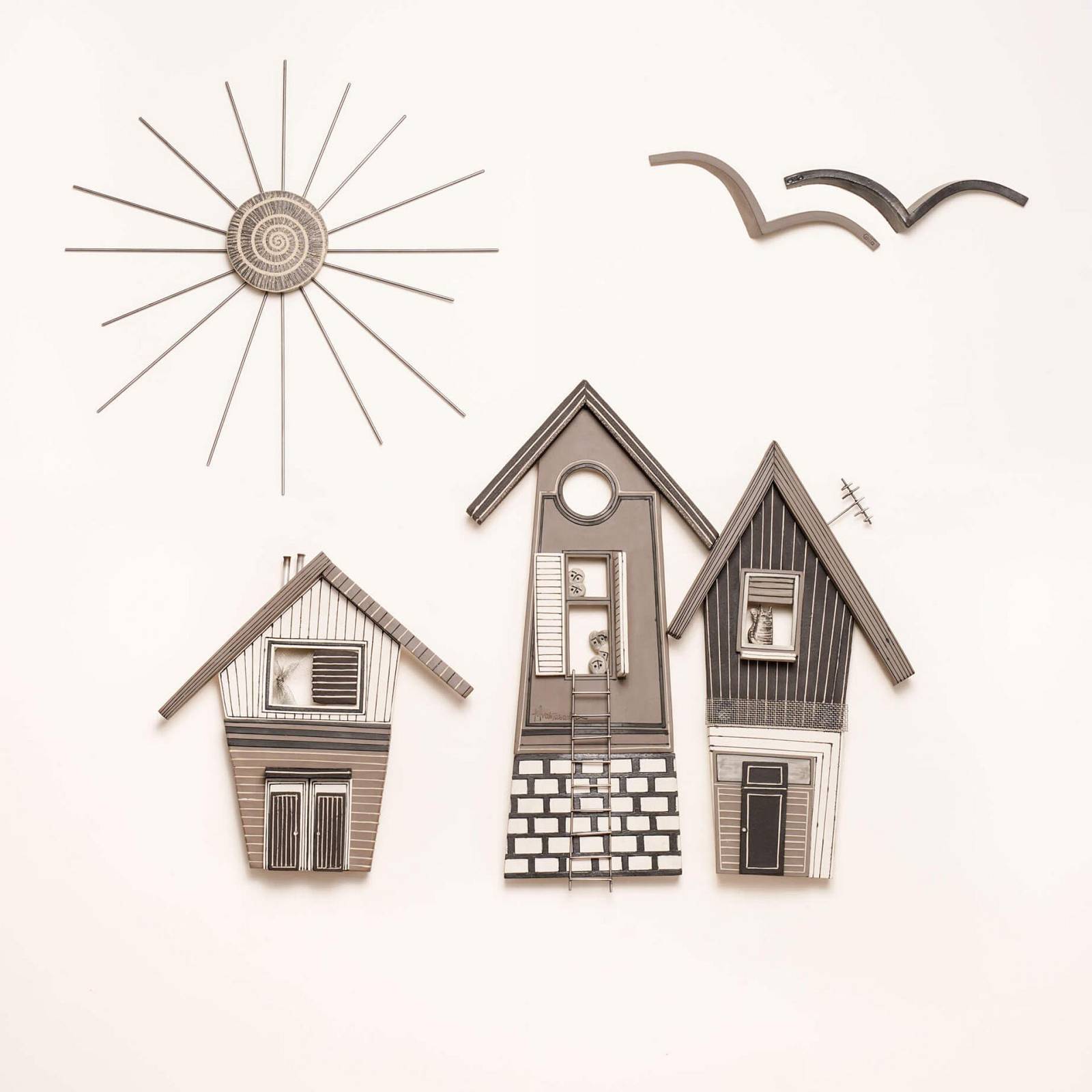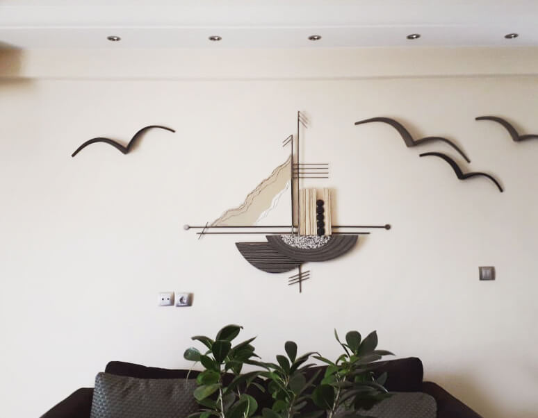 Επιτοίχιος γλάρος τρισδιάστατος, από πηλό Stoneware, με εσοχή πίσω απο το κάθε φτερό για κρυφή στήριξη και εναλλαγή κλίσεων τοποθέτησης.