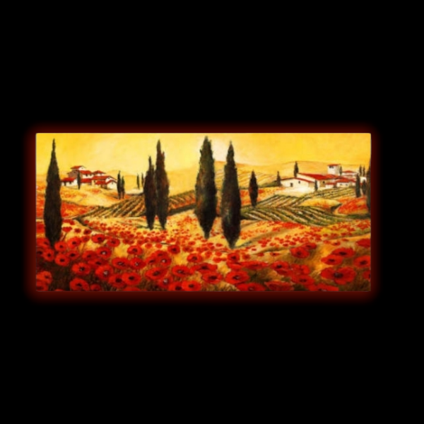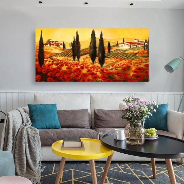 HK0514 - Πίνακας χωριό με παπαρούνες