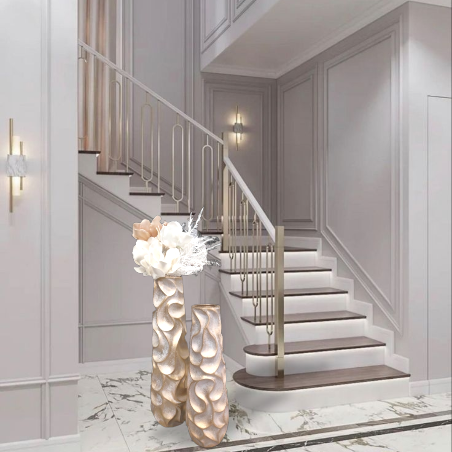 Διακοσμητικά βάζα, δύο διαστάσεων που συνδυάζουν το χρυσό με το λευκό.