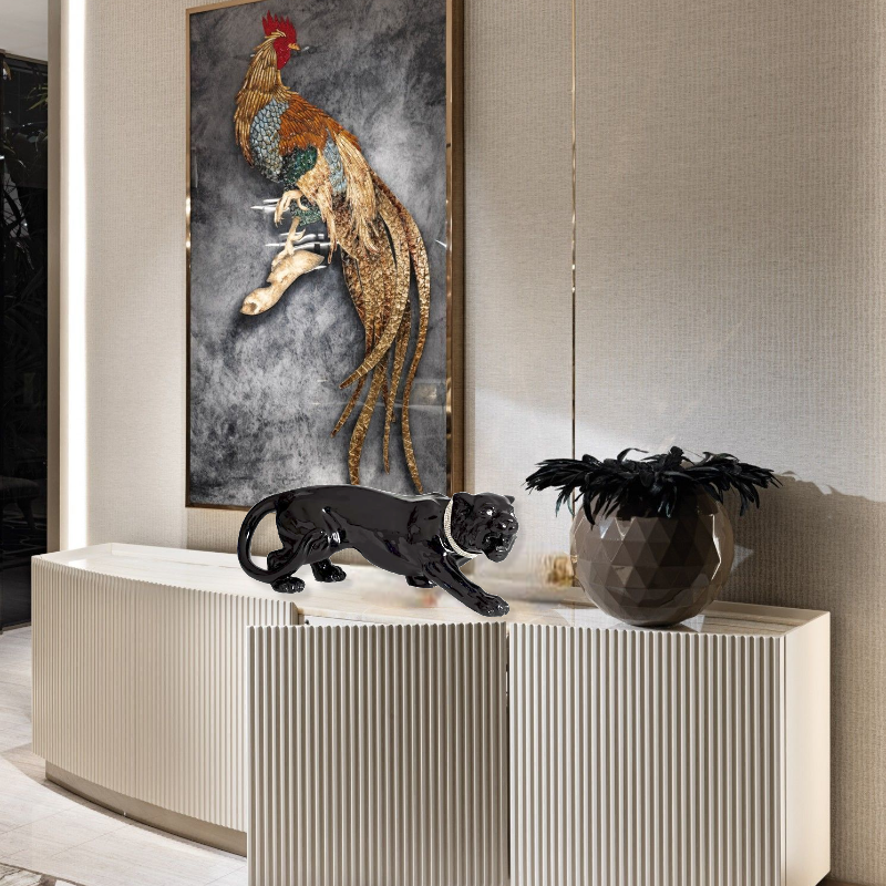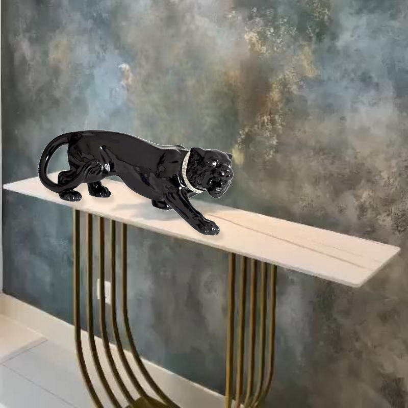Μαύρος πάνθηρας, διακοσμημένος με λεπτομέρειες κρυστάλλων, που προσδίδει στο χώρο ξεχωριστό ύφος και φινέτσα!