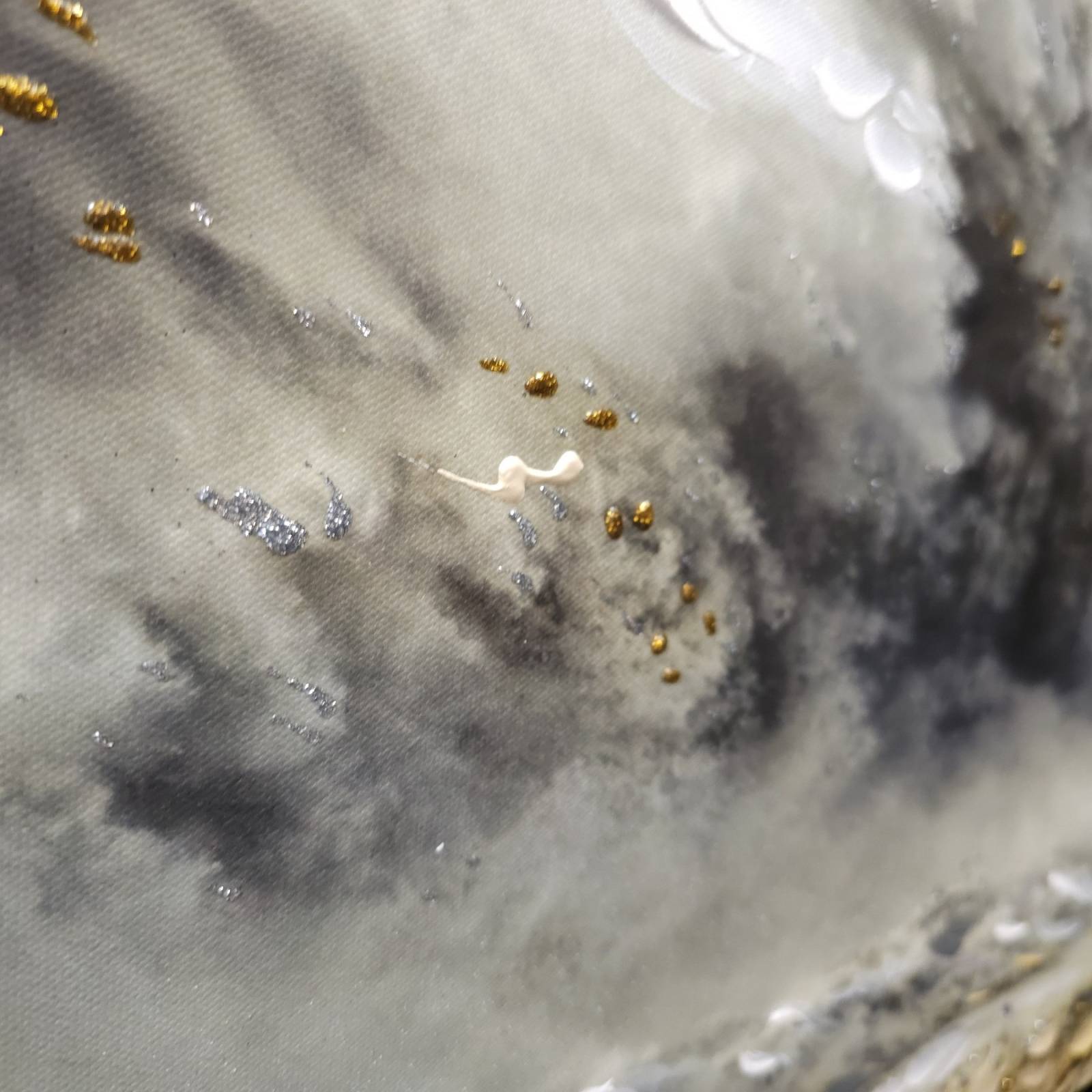 FULL: Πλούσιος στολισμός σπάτουλας ματ + σπάτουλας με ιριδισμούς, κρυστάλλους και τρέσα κρυστάλλων. Τεχνική που δίνει μία μοναδική αίσθηση κίνησης και φωτισμού στο έργο.