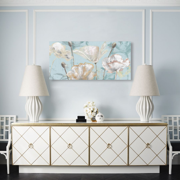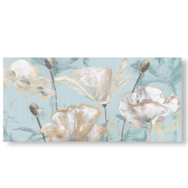 HK0151 - Πίνακας λευκά λουλούδια σε γαλάζιο φόντο